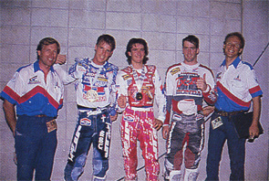 Roger De Coster, Ricky Johnson, JMB, Jeff Stanton et Dave Arnold tout heureux de ce triplé Honda