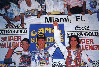 Jean-Michel Bayle sur son premier podium de SX US en compagnie de Ricky Johnson et Jeff Stanton