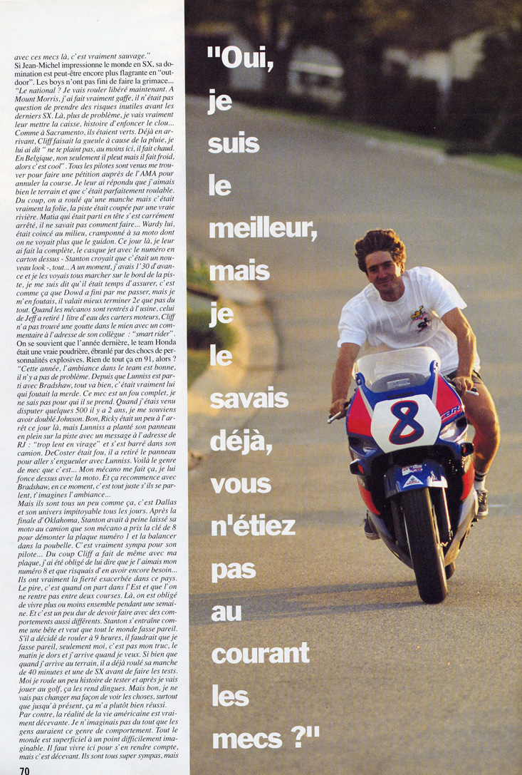 Petite interview prise dans le programme official du Supercross 1992