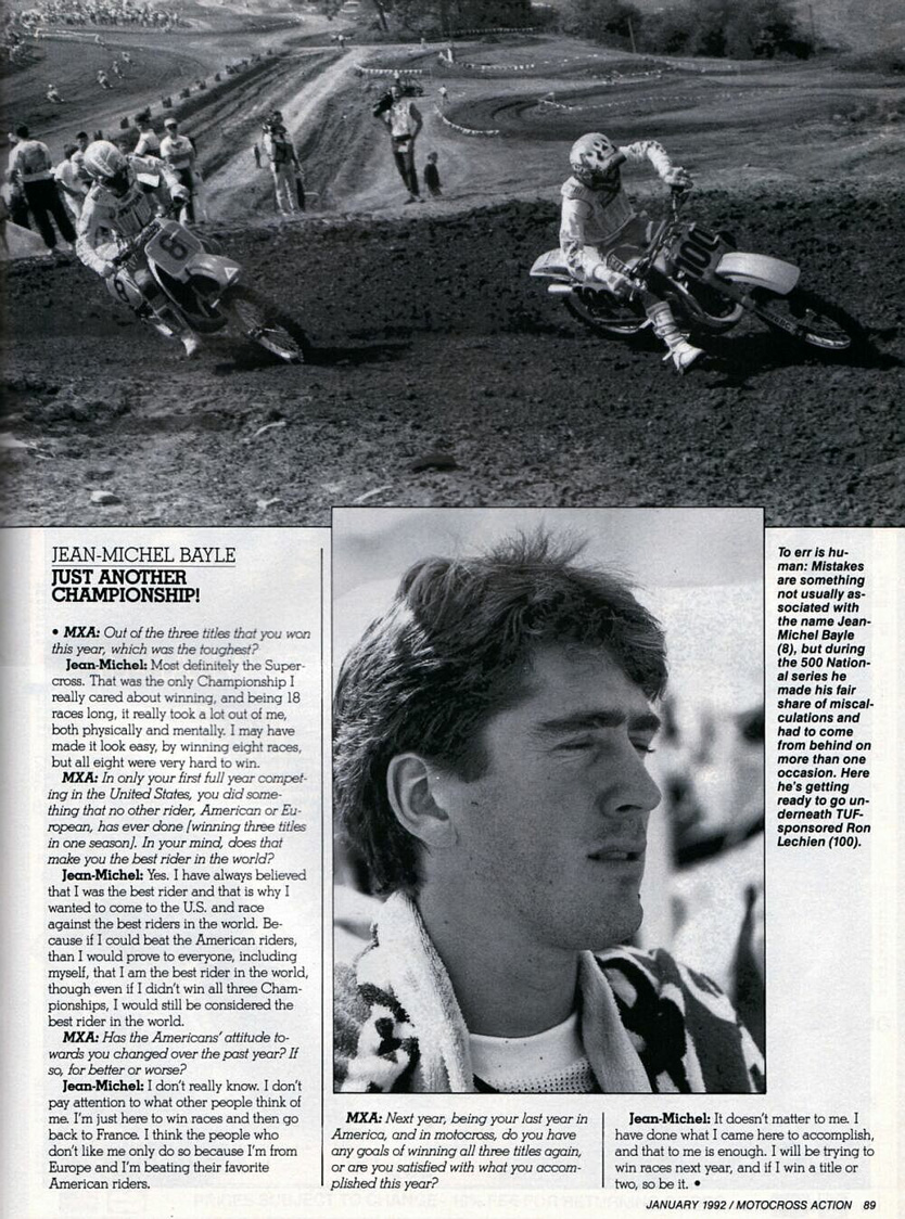 Dans leur numéro spécial supercross 91, Moto Crampons donne une interview de JMB, la voici.