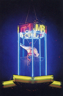 Jean-Michel est présenté au public descendant dans une nacelle en verre après le gonflage d'un BAYLE géant de 8 mètres.