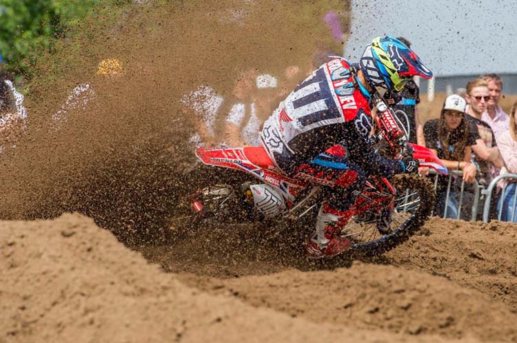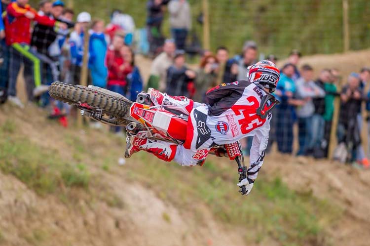 C'est Glenn Colenhoff qui signe le holeshot suivi par Antonio Cairoli et Clément Desalle. Tim Gasjer est quant à lui cinquième alors qu'Evgeny Bobryshev est douzième. Le troisième pilote Honda, Gautier Paulin, a chuté au première virage et repart bon dernier. Tim Gasjer était revenu troisième, tout proche des leaders lorsqu'il chute dans la série de vagues. Lorsqu'il reprend sa moto, celle-ci à la cocotte de frein avant arrachée, ce qui le contraint à l'abandon. Evgeny Bobryshev fera une course moyenne et se classera neuvième alors que Gautier Paulin ne réussira pas à revenir et ne pourra prendre que la dix-huitième position. C'est donc un week-end très mitigé pour tout le clan Honda.