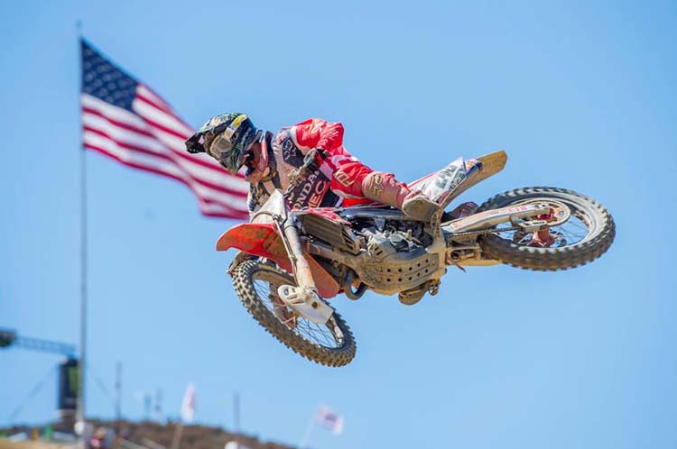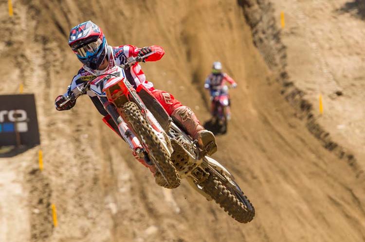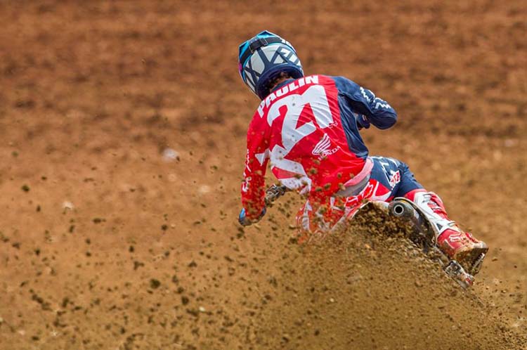 Malgré sa sixième place en course qualificative, Eli Tomac va une nouvelle fois mettre tout le monde d'accord et remporter cette première manche. Il devance Antonio Cairoli qui n'a pas réussi à le contenir. Le premier pilote Honda n'est autre que le nouveau champion du monde de la catégorie, Tim Gasjer, qui se hisse à la quatrième position. Les deux autres pilotes Honda se classent 10ème pour Gautier Paulin et Evgeny Bobryshev finit juste derrière à la onzième place.