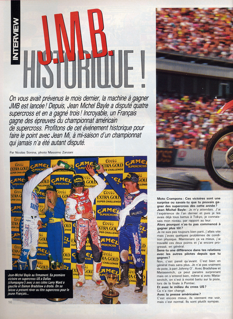 Suite à ces trois victoires consécutives en SX, Moto Crampons fait une petite interview de Jean-Michel dans leur numéro de Juin.
