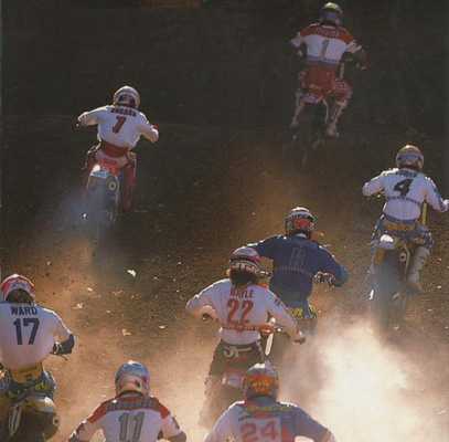 Le départ d'Anaheim : Johnson signe le holeshot devant Larry Ward, Jeff Stanton, Jeff Matiasevich et JMB à l'intérieur